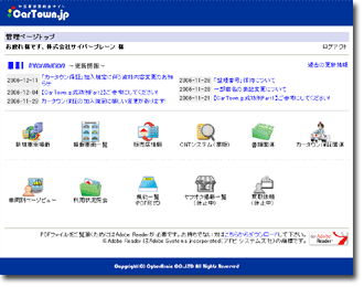カータウン.jpから割り当てられたログインID、パスワードを使用することで、お店のパソコンからはもちろんのこと、ご自宅のパソコンからでも作業が可能となっております。 |