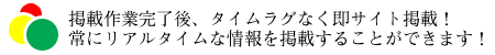 いつでもリアルタイムな情報を、お客様に提供できるように、我々は掲載作業が完了した直後に反映されるようにしました。 |